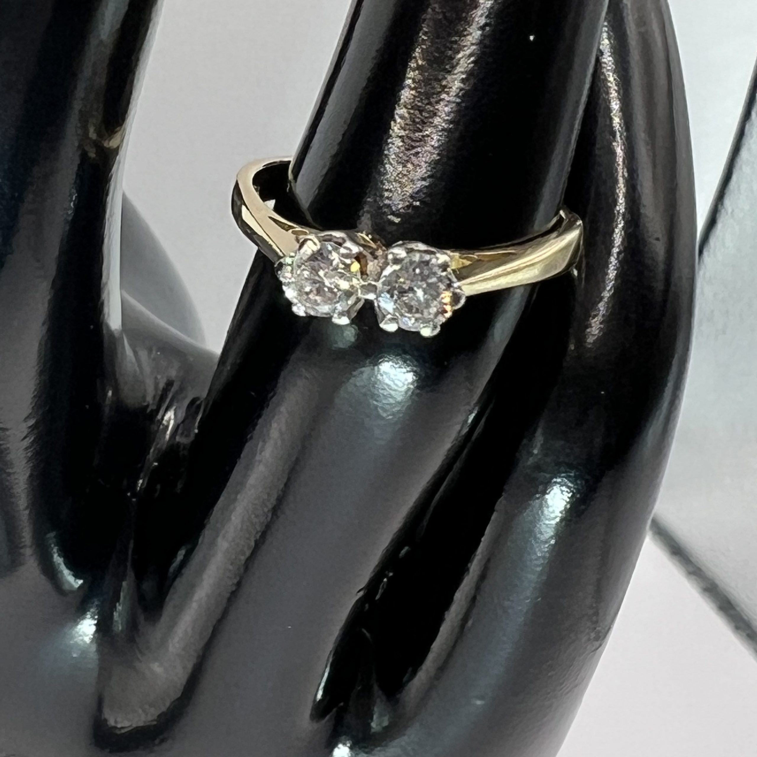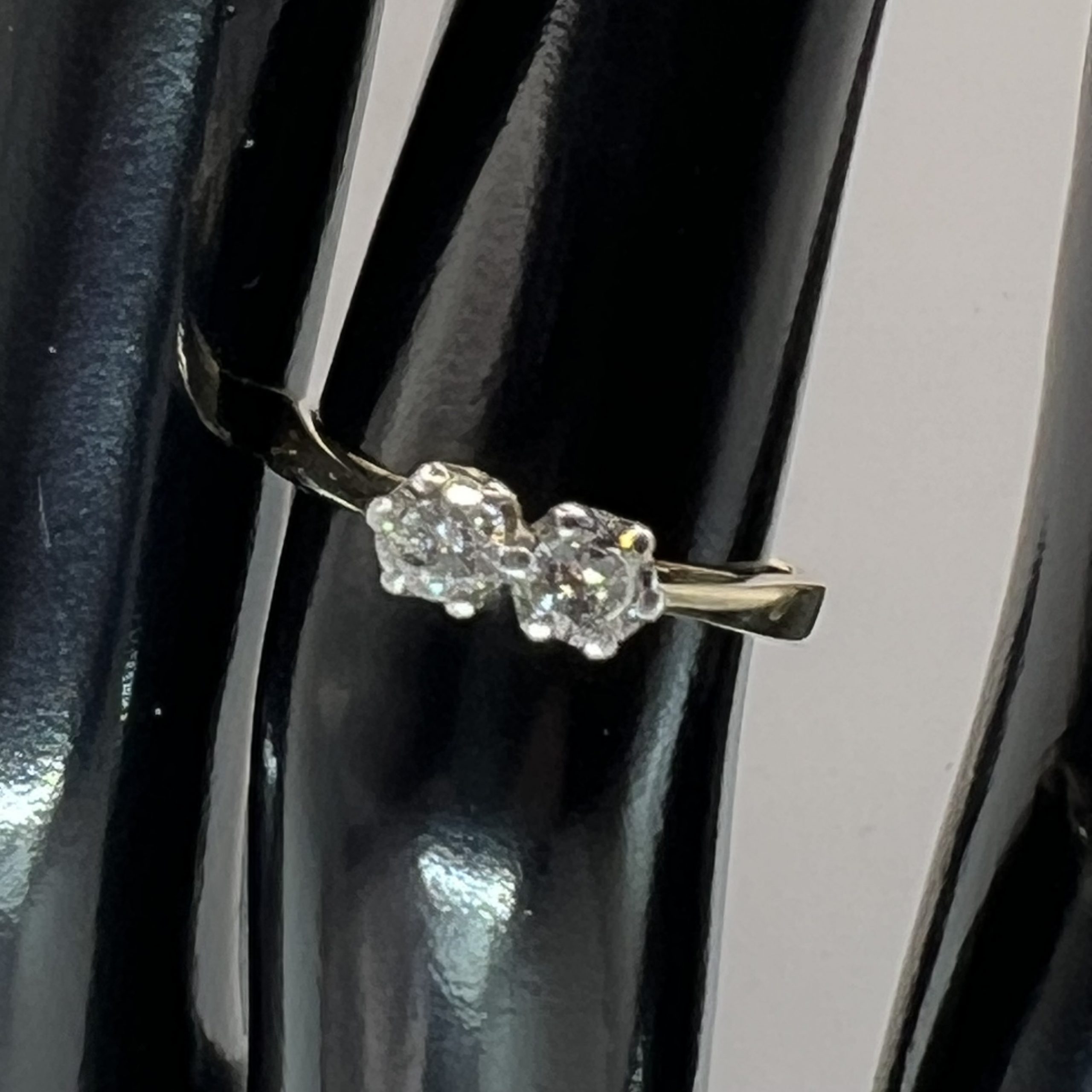 Discover timeless elegance with this exquisite 18ct yellow gold two-stone engagement ring, featuring a stunning prong setting that beautifully showcases the sparkling diamonds. This classic piece, UK size K, is perfect for stacking or as a standalone statement, making it an ideal gift for that special someone. Pre-owned and presented in a luxurious box, this ring is hallmarked for authenticity, ensuring you give a gift that is both meaningful and of the highest quality.
