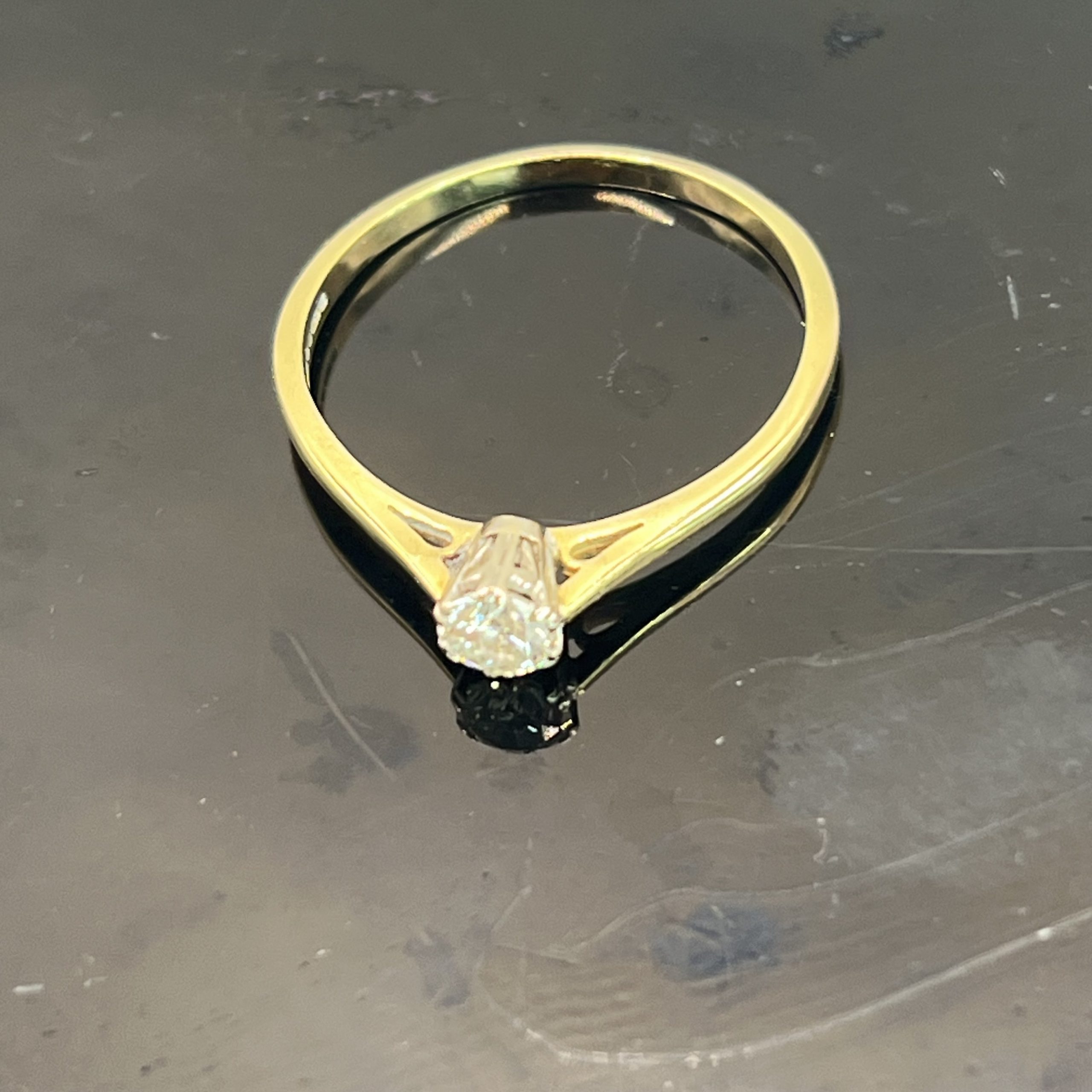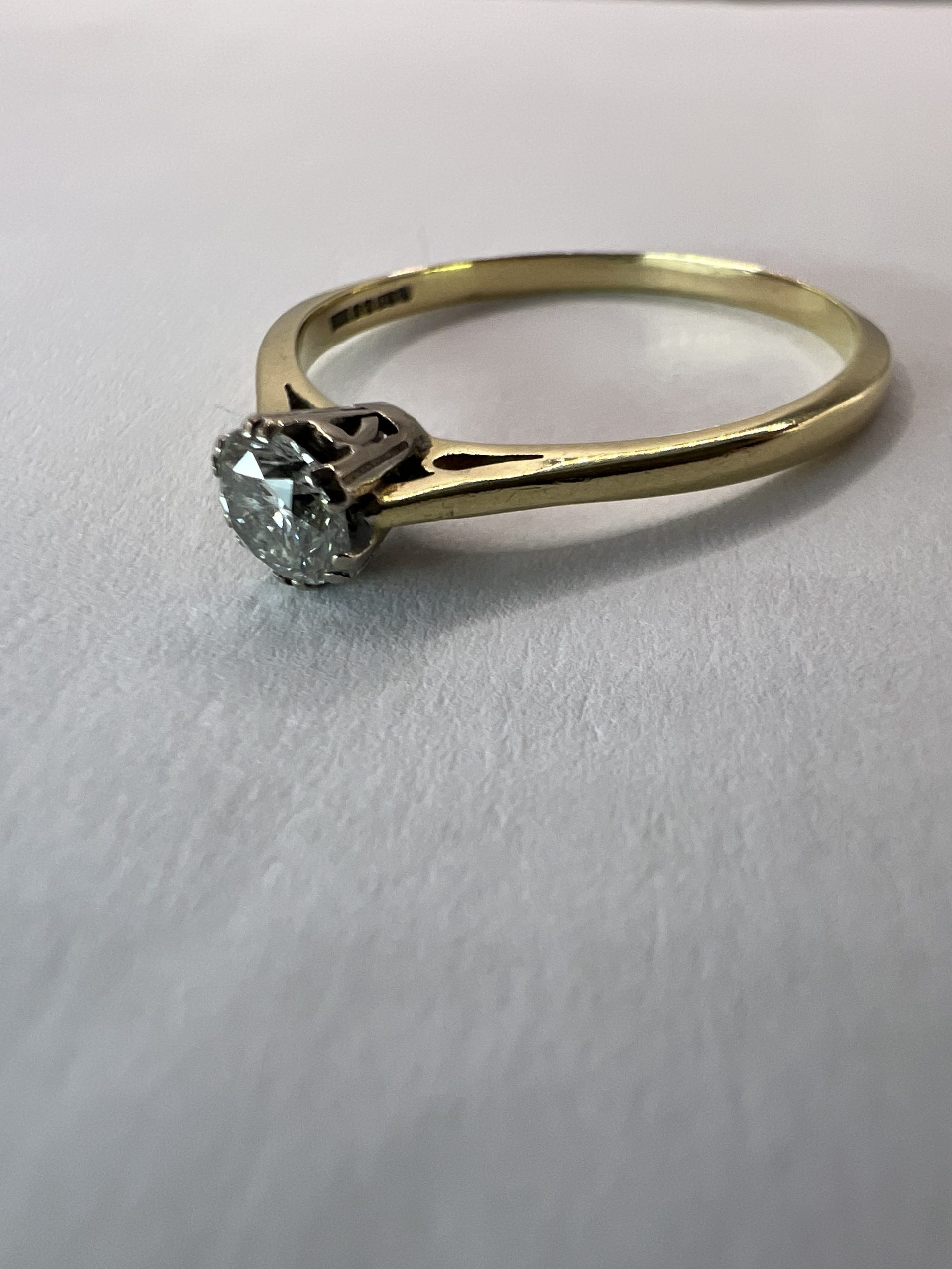 Discover timeless elegance with this exquisite 18ct yellow gold diamond solitaire engagement ring, a perfect symbol of love and commitment. Featuring a stunning diamond set in a classic design, this pre-owned piece is hallmarked for authenticity and offers a unique charm that new rings simply cannot replicate. Sized at UK size W, it can also serve as a beautiful stacking ring, making it a versatile addition to any jewellery collection. Presented in a luxurious black velvet box, it makes an ideal gift for that special someone or a cherished treat for yourself.