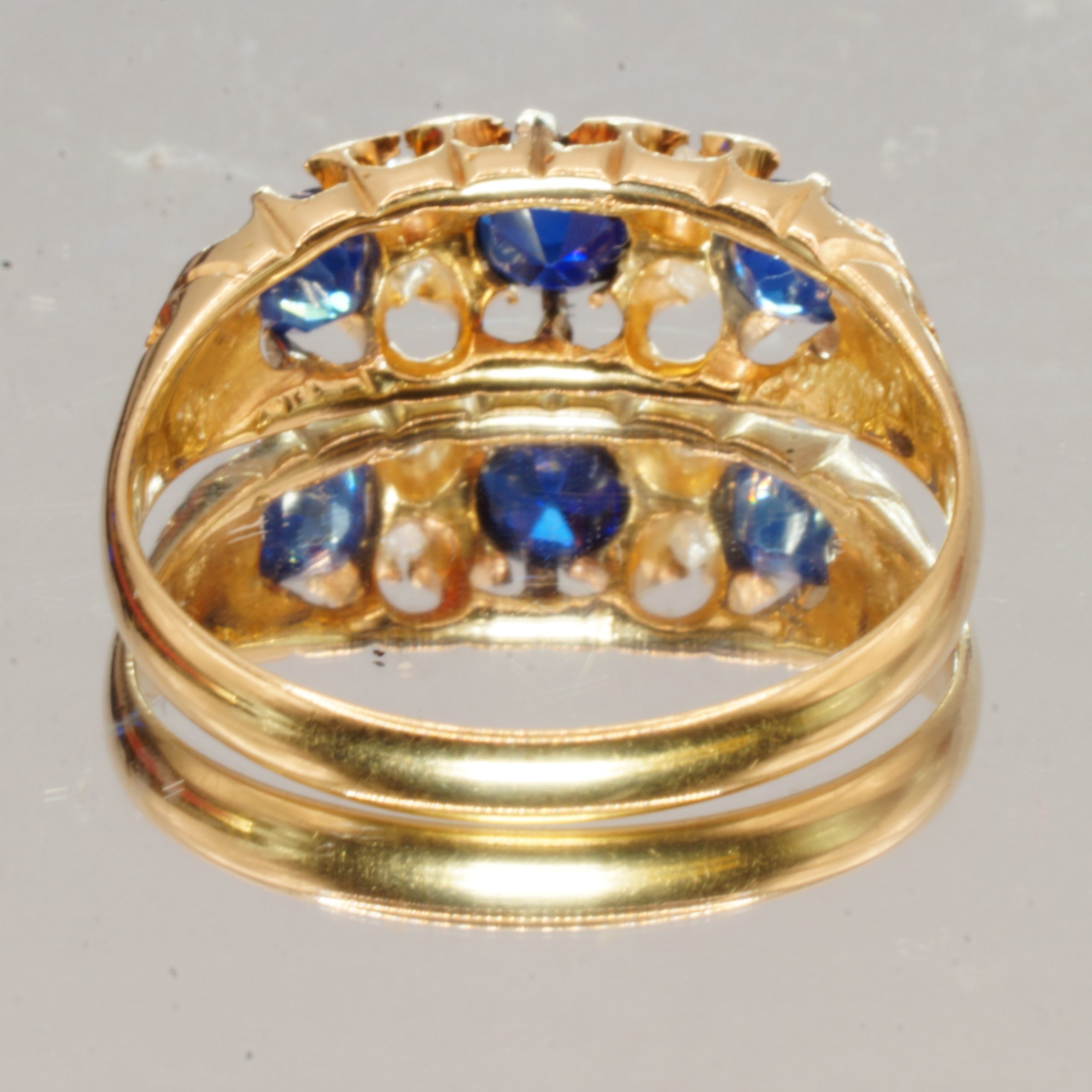 Discover the timeless elegance of this exquisite 18ct Yellow Gold hallmark ring, featuring a stunning combination of Sapphire and Diamond in a classic prong setting. Perfect for stacking or wearing solo, this pre-owned piece is a true statement of sophistication, available in UK Size N. It comes beautifully presented in a luxurious velvet box, making it an ideal gift for a loved one or a special treat for yourself. Embrace the allure of this elegant ring and elevate your jewellery collection today.