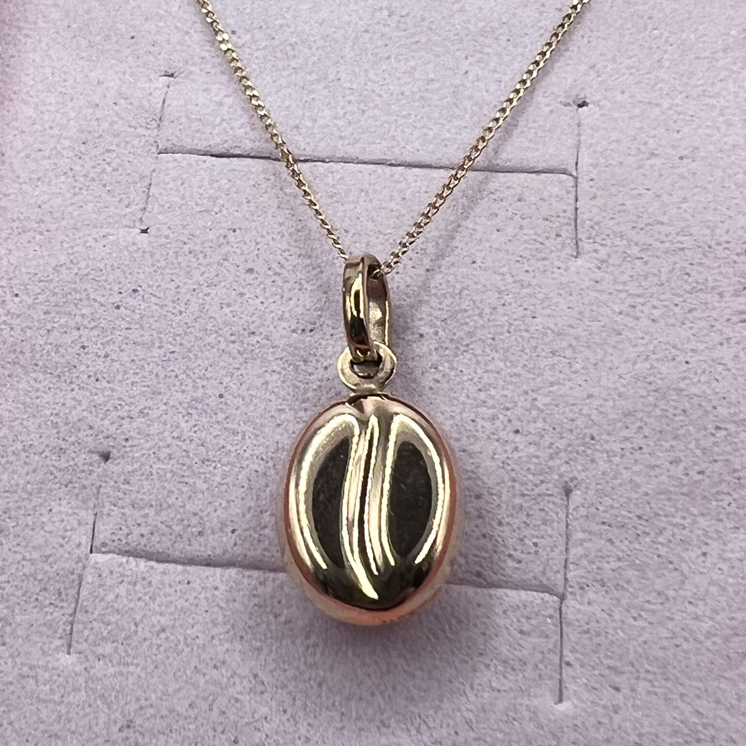 Discover the elegance of our pre-owned 9ct yellow gold light chain, featuring a charming coffee bean pendant. Measuring 18 inches, this exquisite piece is hallmarked for authenticity and comes beautifully presented in a luxurious black velvet box, making it the perfect gift for a loved one or a special treat for yourself. Embrace the allure of timeless jewellery that tells a story and adds a touch of sophistication to any outfit.