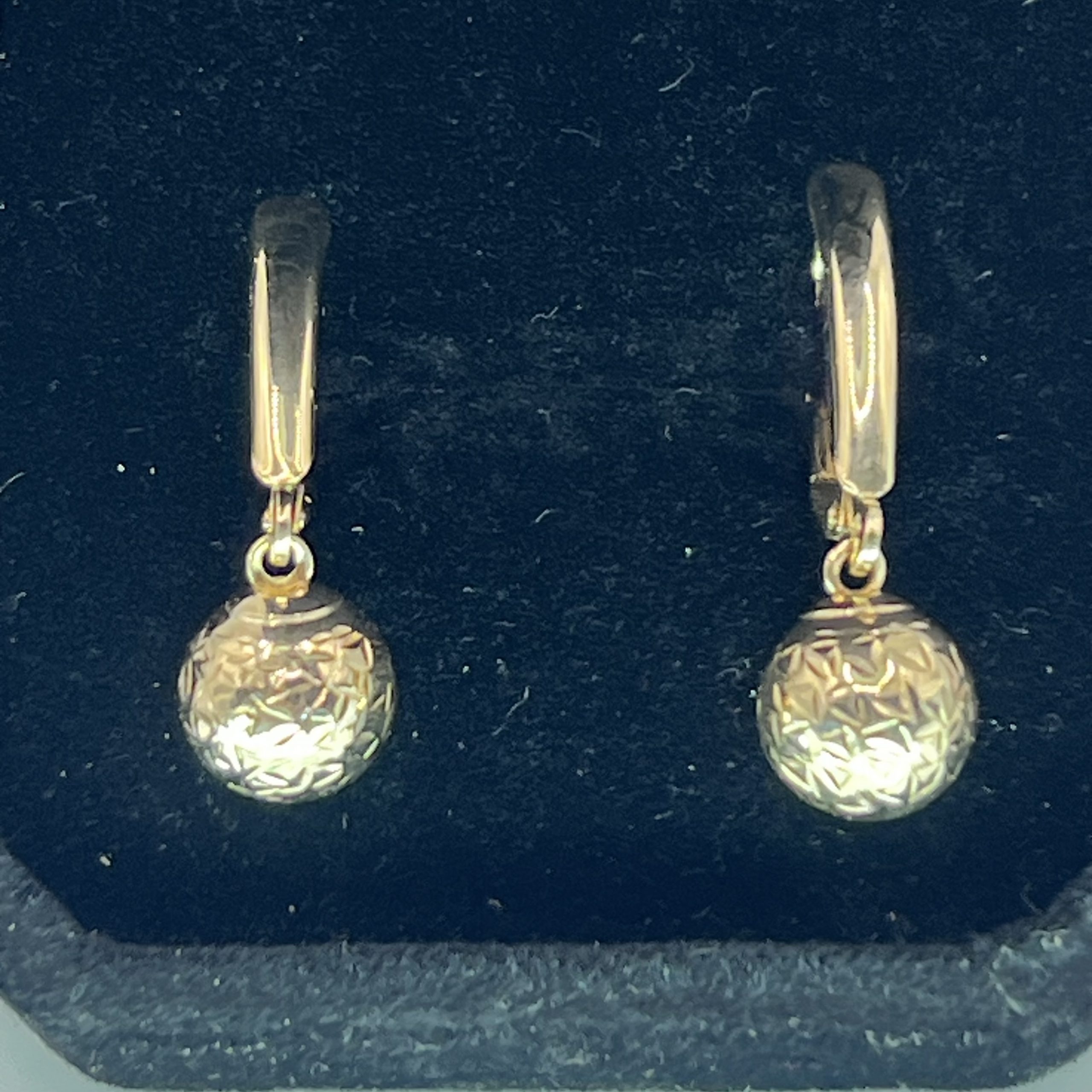 Elevate your jewellery collection with these exquisite 9ct yellow gold dangle earrings, featuring a timeless ball shape design that adds a touch of elegance to any outfit. Crafted with care and bearing a hallmark, these pre-owned earrings are not only a sustainable choice but also come beautifully presented in a luxurious velvet box, making them an ideal gift for a loved one or a special treat for yourself. The secure hinge closure ensures a comfortable fit for pierced ears, allowing you to wear them with confidence on any occasion. Item diameter 8mm.