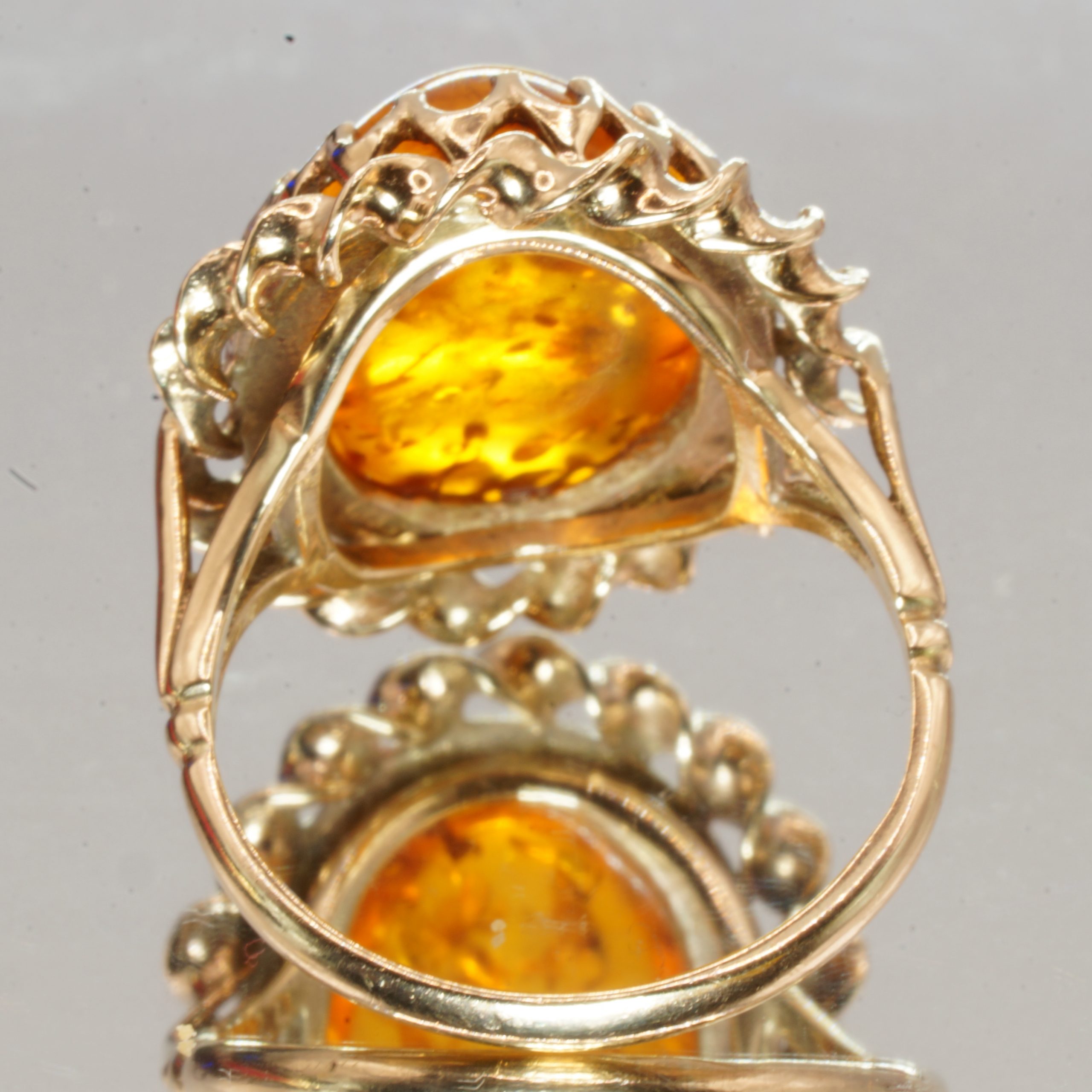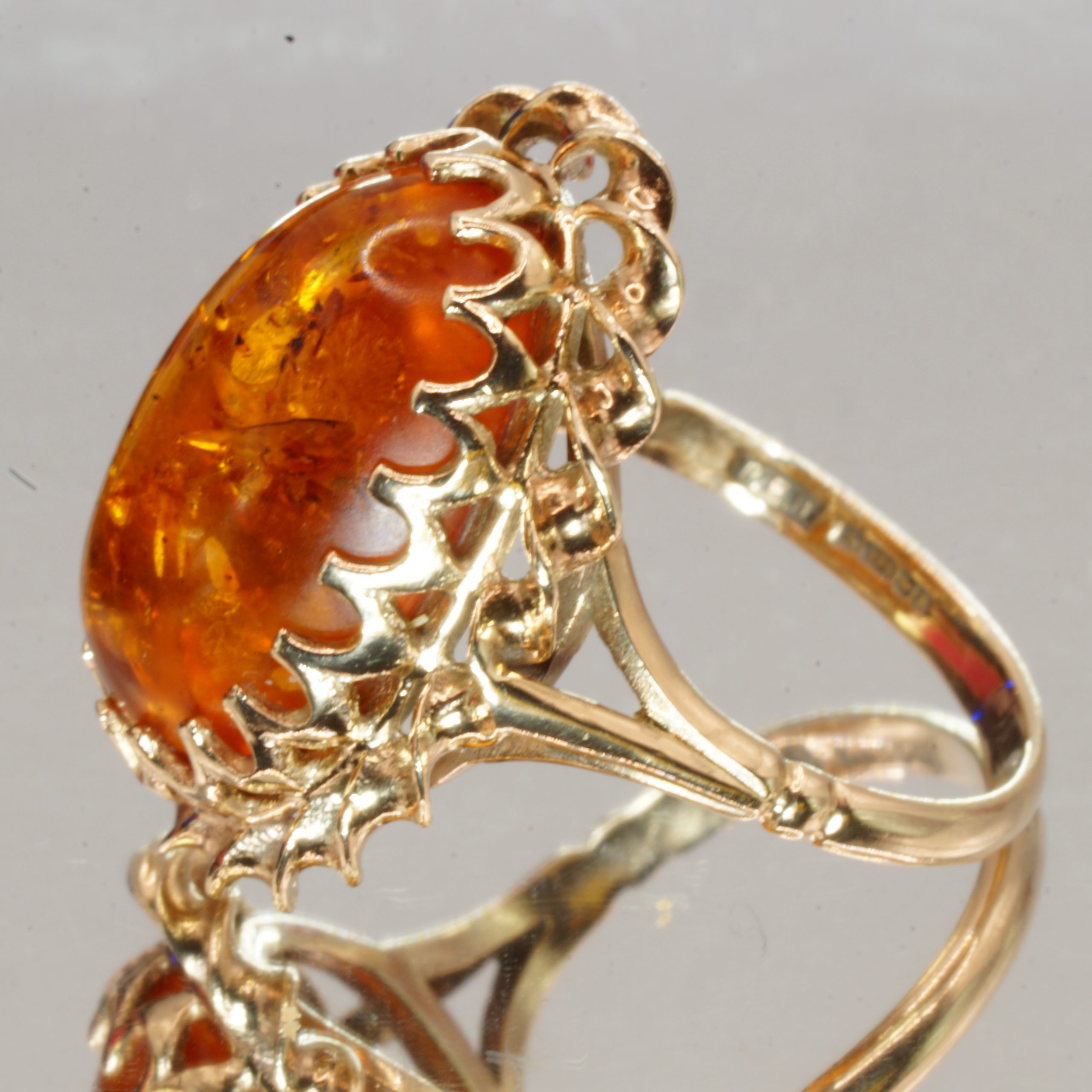 9ct Gold Baltic Amber Cabochon Ring UK Size N1/2 Pre Owned