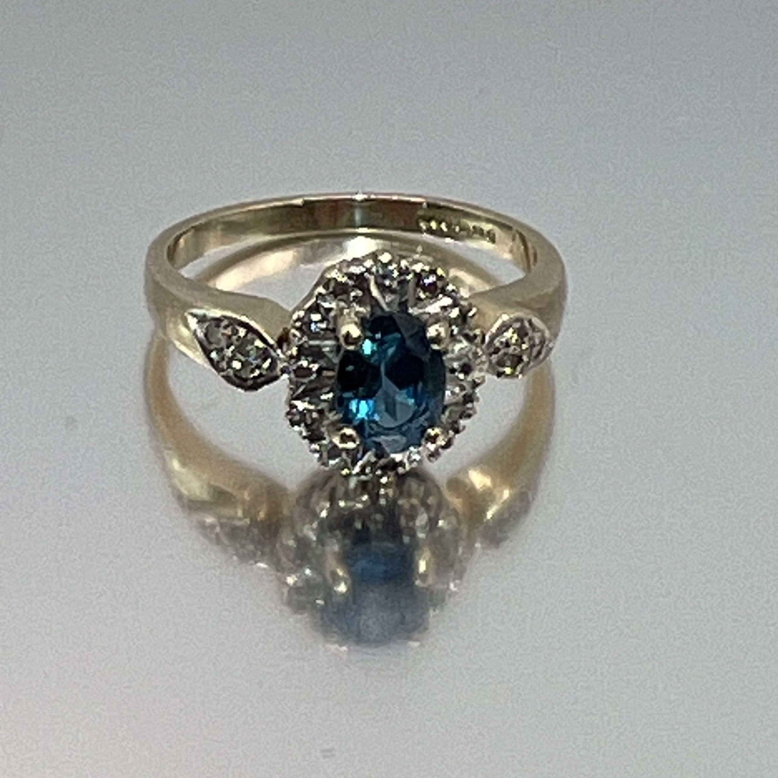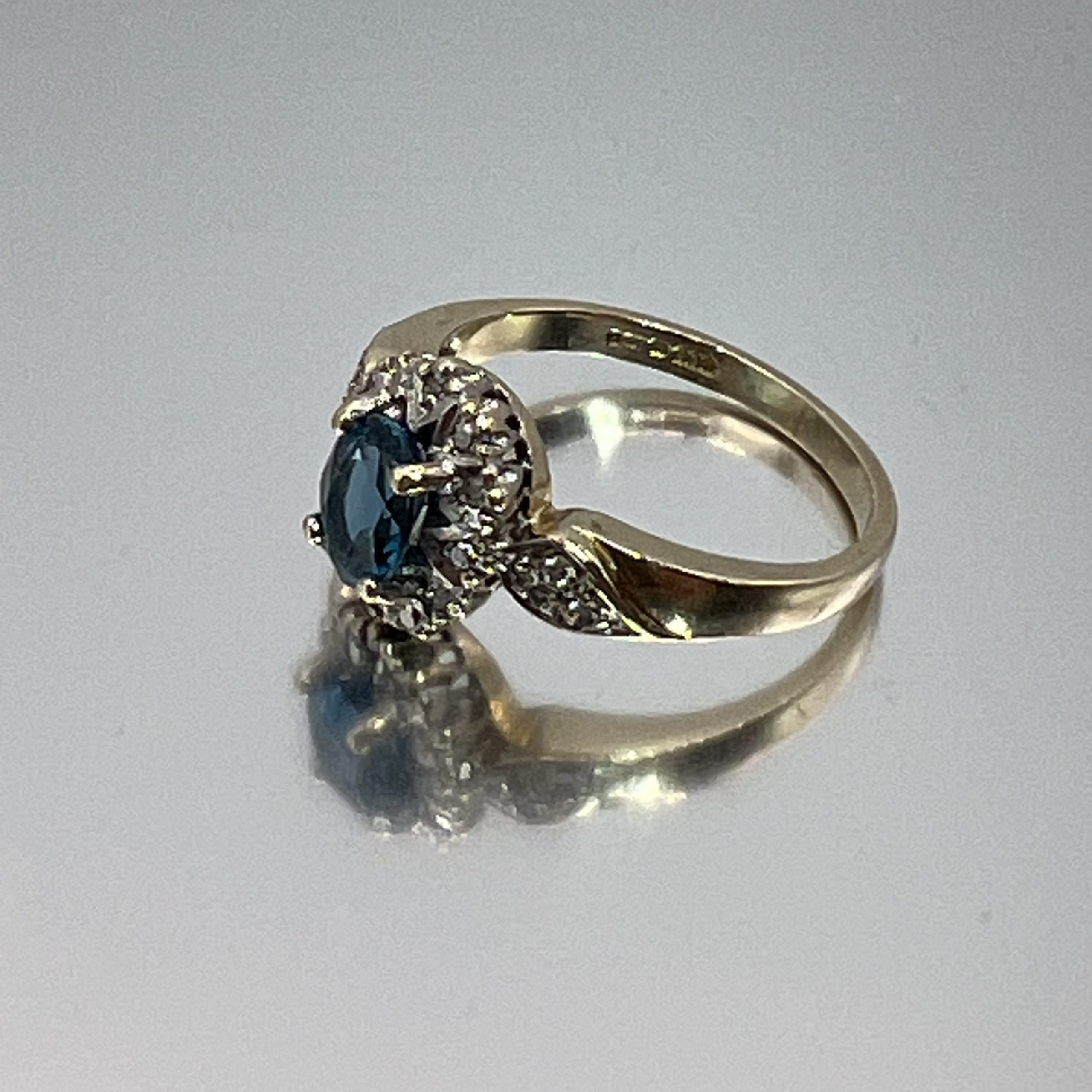 9ct Gold Blue Indigolite Diamond Halo Ring UK Size M1/2 Pre Owned