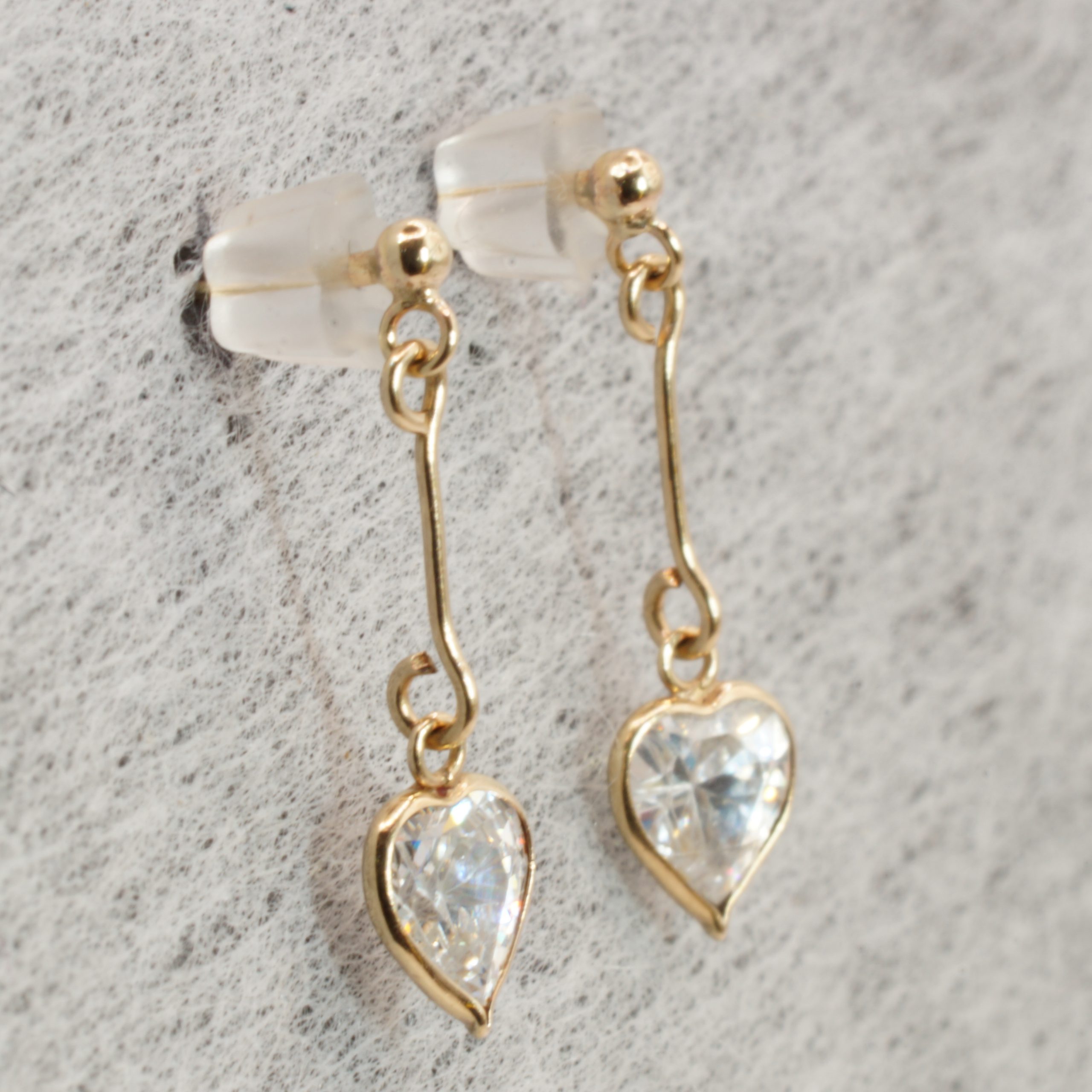 Elevate your accessory collection with these exquisite 9ct yellow gold petite dangle drop earrings. Featuring charming heart-shaped detail, these earrings add a touch of elegance to any outfit. With a secure pushback closure and a length of 17mm, they are perfect for everyday wear or special occasions. Pre-owned yet in excellent condition, these earrings make a thoughtful gift for someone special or a delightful treat for yourself. Ideal for pierced ears, they combine style and sophistication effortlessly.