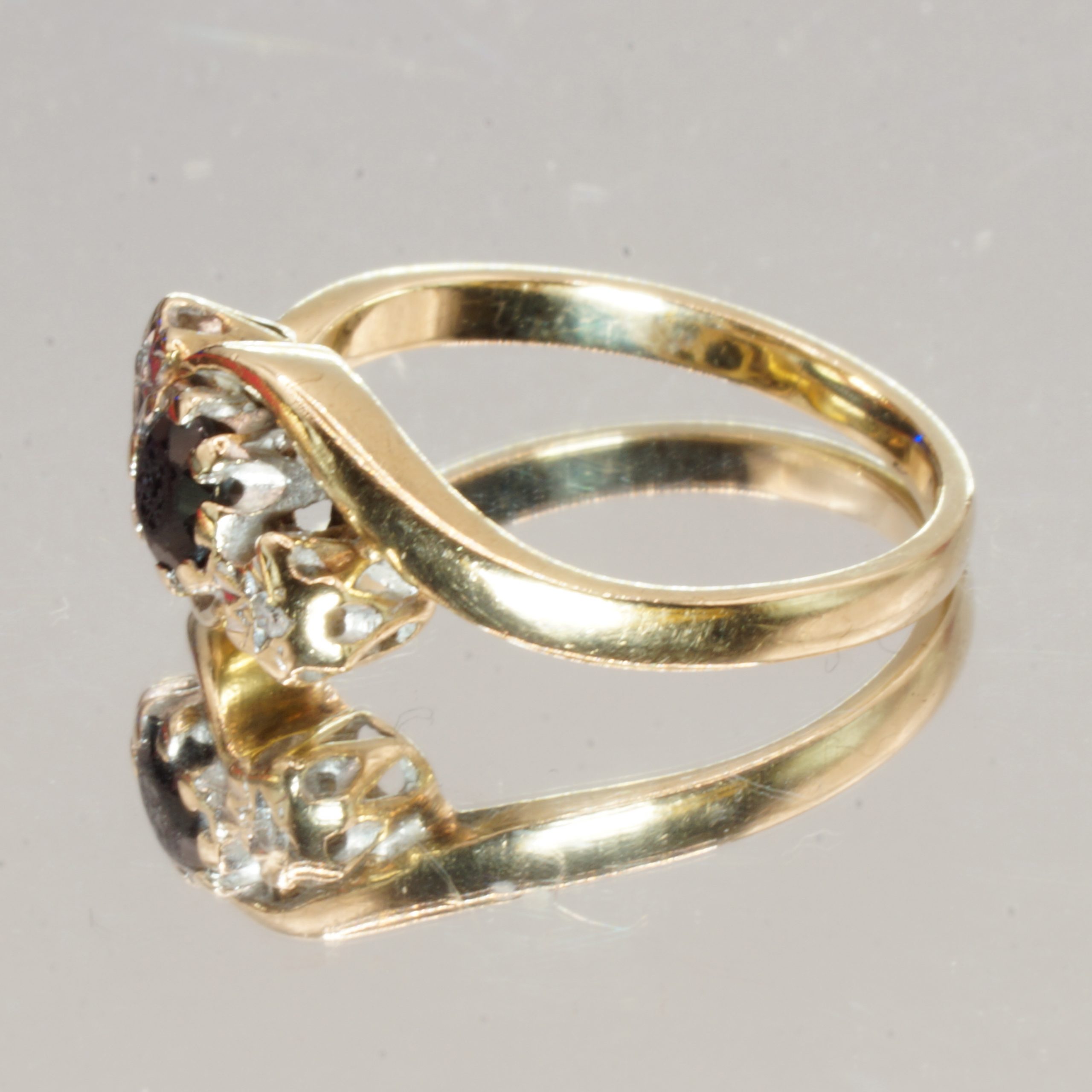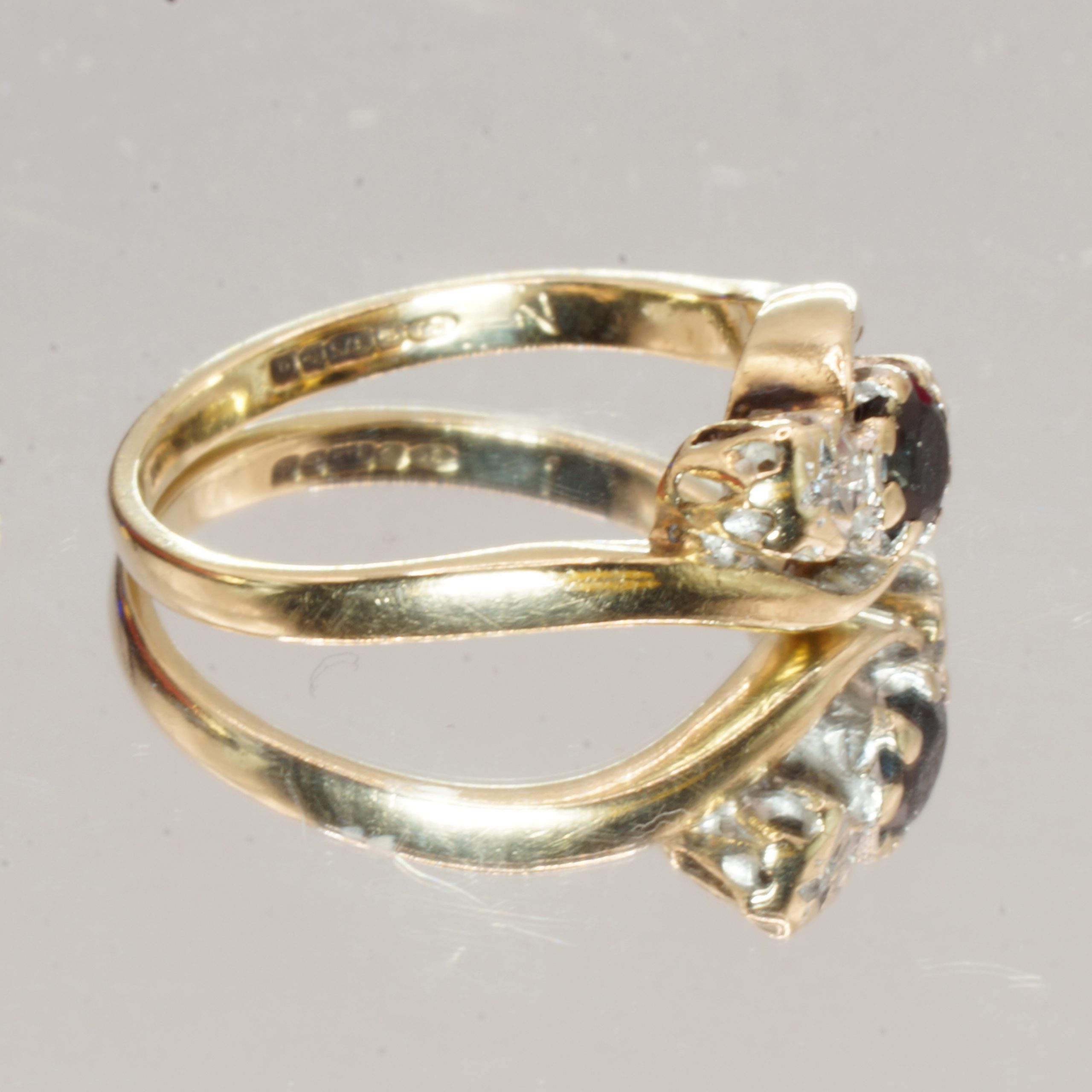 Discover the timeless elegance of this exquisite 9ct yellow gold trilogy ring, featuring a stunning combination of sparkling diamonds and vibrant sapphire. This pre-owned piece, complete with a hallmark, showcases a unique crossover design that makes it perfect as an engagement ring or a stylish stacking ring. Presented in a luxurious velvet box, it serves as an ideal gift for a loved one or a cherished addition to your own jewellery collection. With a UK Size I, this solid gold ring embodies sophistication and charm, making it a must-have for any discerning jewellery enthusiast.