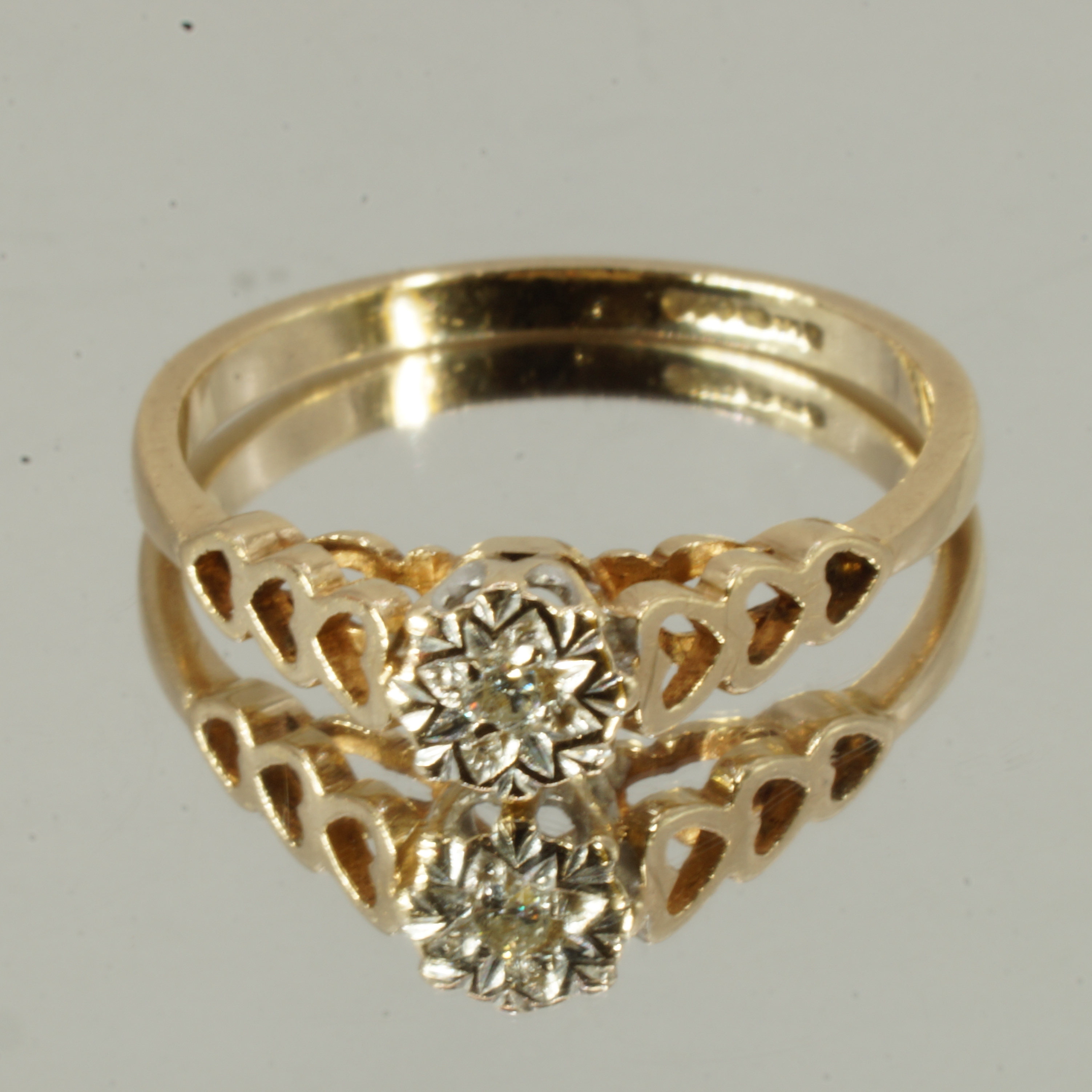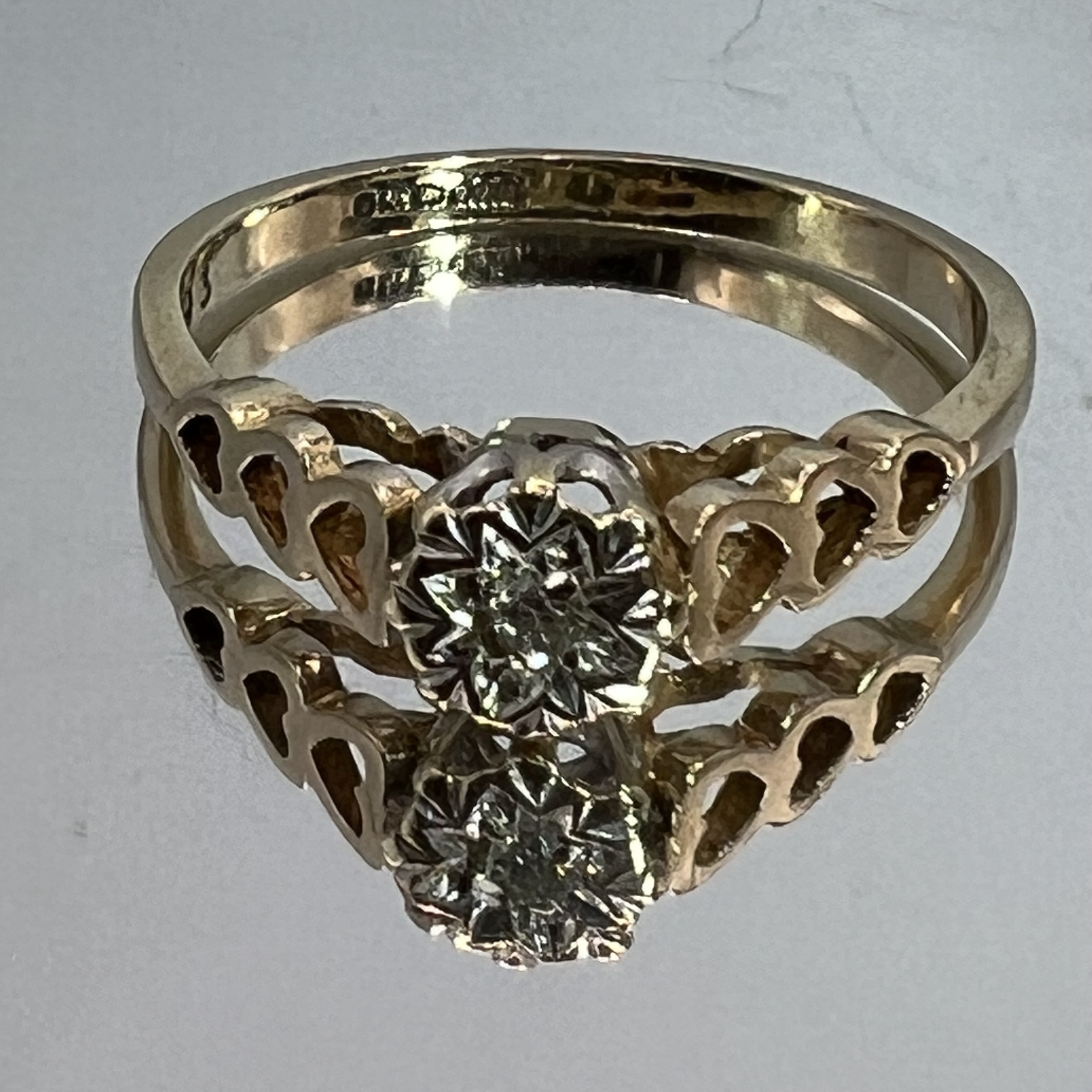 9ct Gold Diamond Solitaire Heart Ring UK Size M1/2 Pre Owned