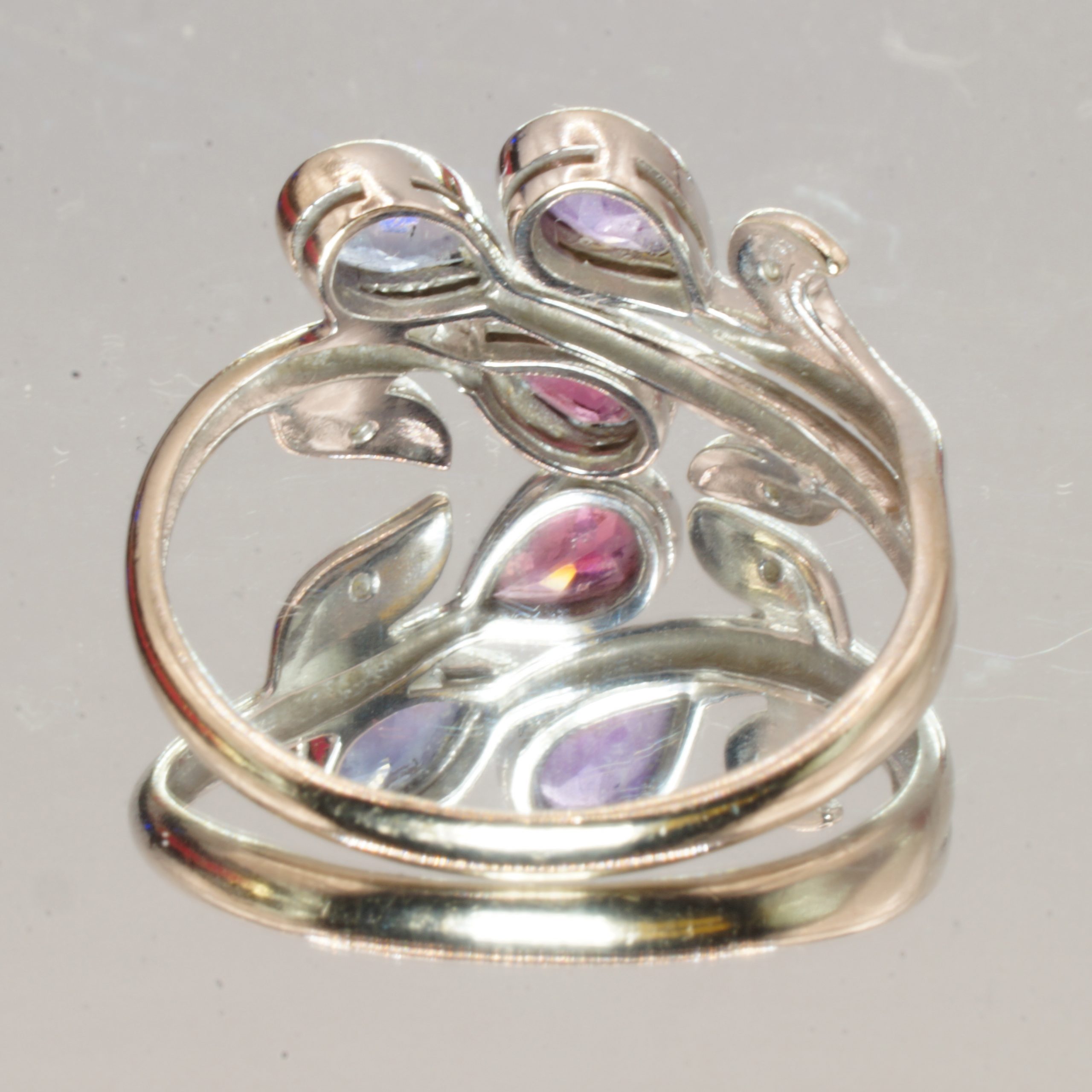 Discover the elegance of this exquisite 9ct White Gold ring, featuring stunning Amethysts and sparkling Diamonds. This pre-owned piece, complete with a hallmark, showcases timeless craftsmanship and sophistication, making it a perfect gift for a loved one or a cherished addition to your own collection. Presented in a luxurious velvet box, this ring is a UK Size O, ensuring a comfortable fit for the discerning wearer. Elevate your jewellery collection with this captivating piece that beautifully combines colour and brilliance.
