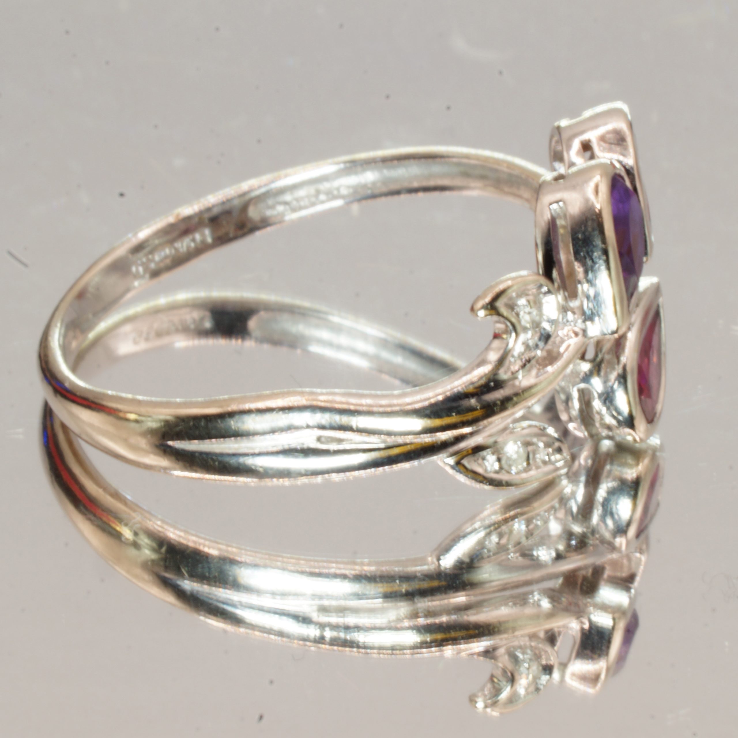 9ct White Gold Amethyst Diamond Ring Pre Owned UK Size O