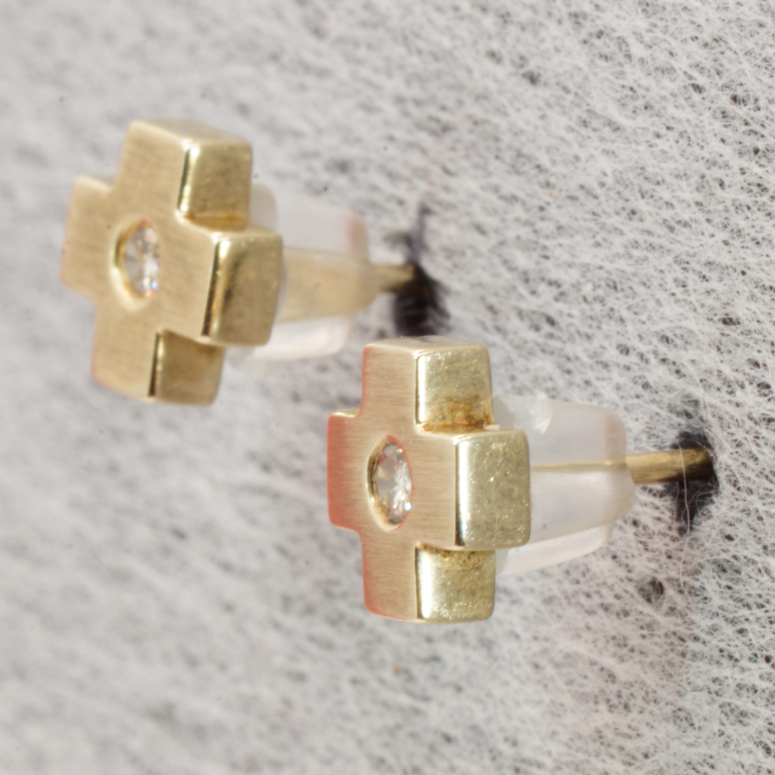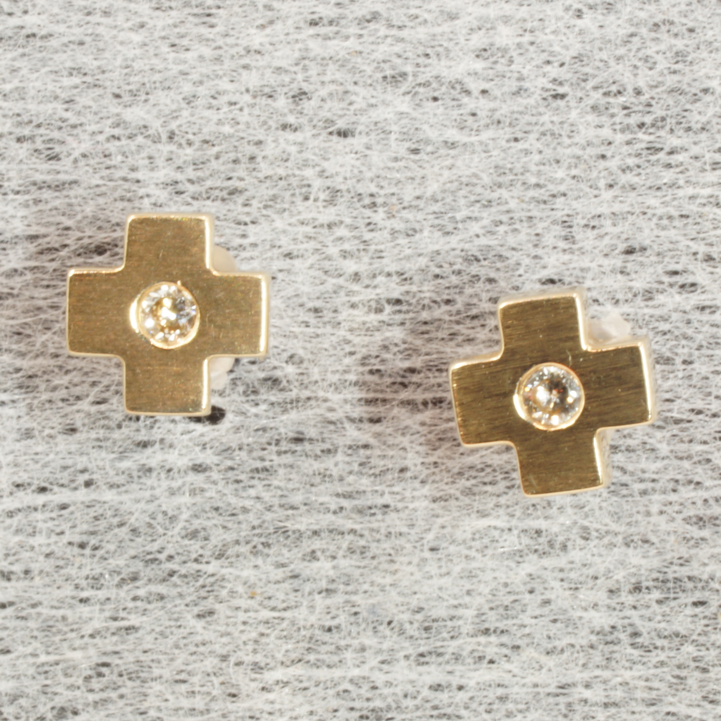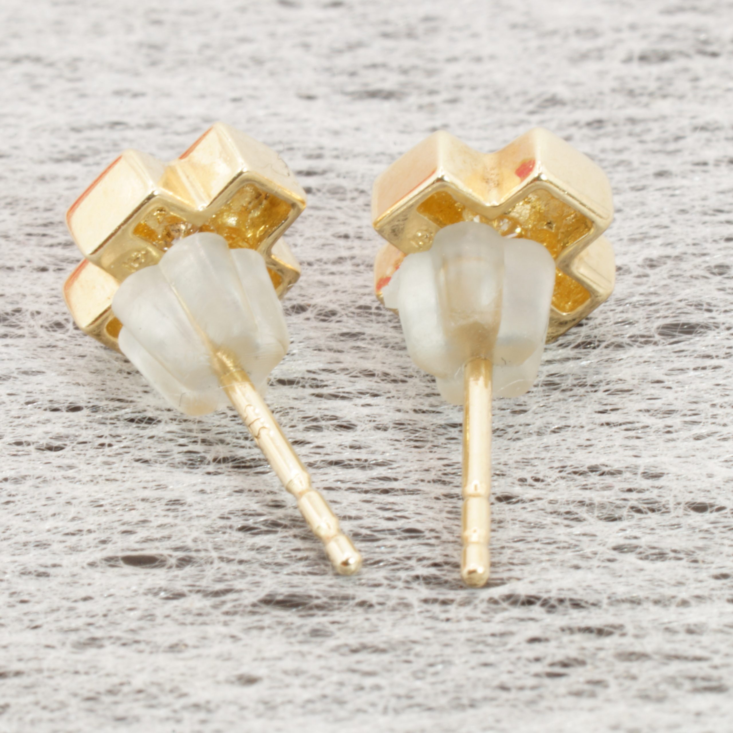 9ct Yellow Gold Diamond Stud Earrings Pierced Ears Pre Owned