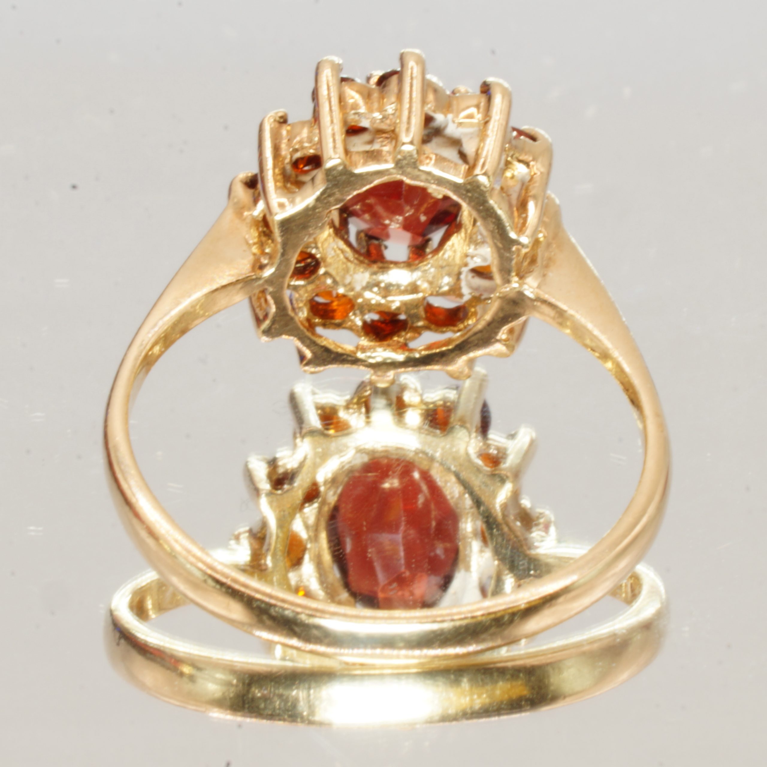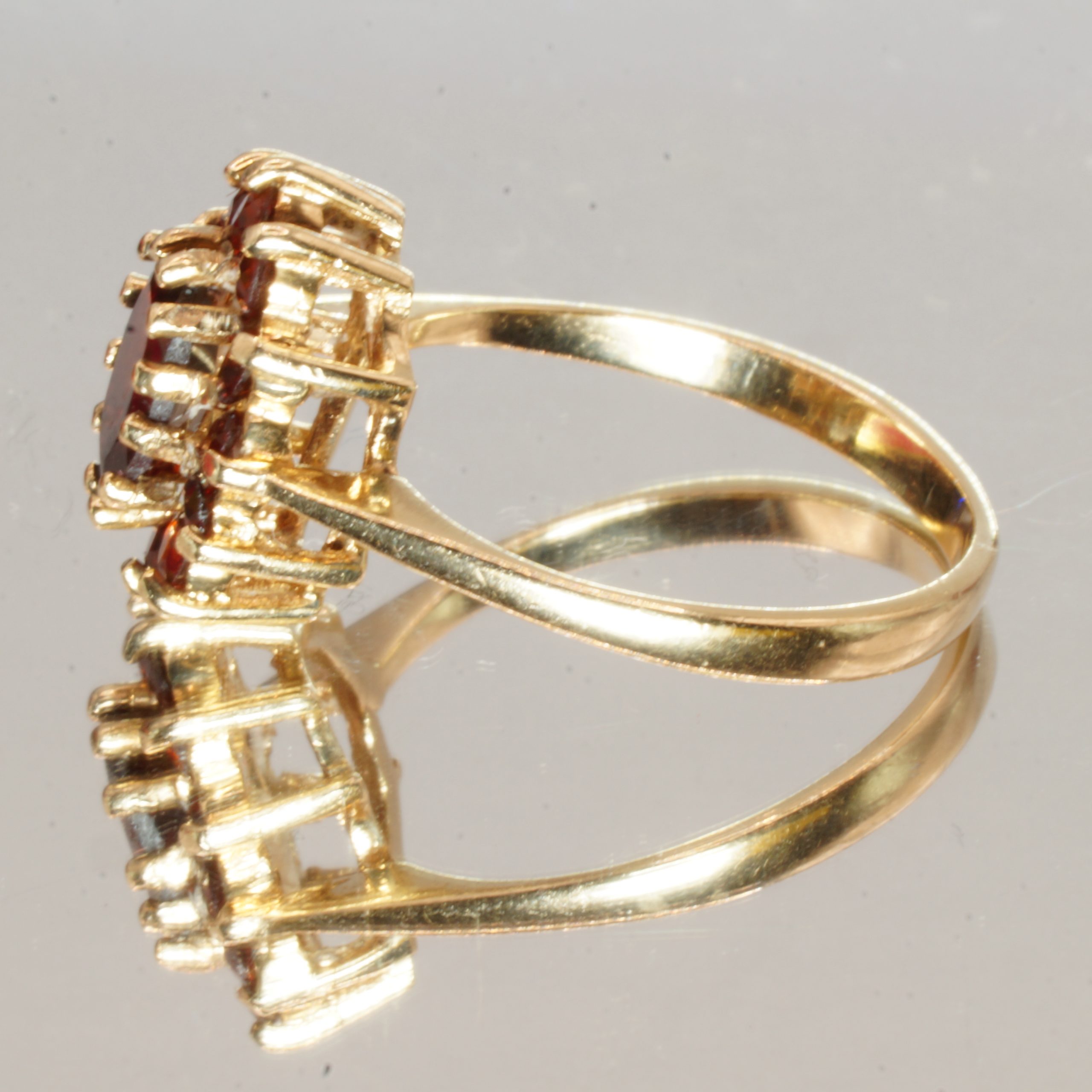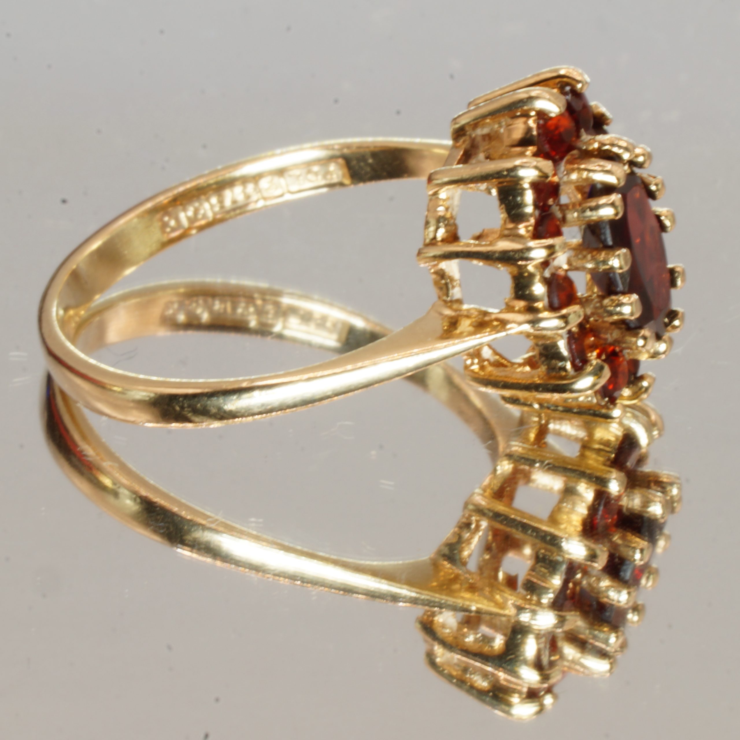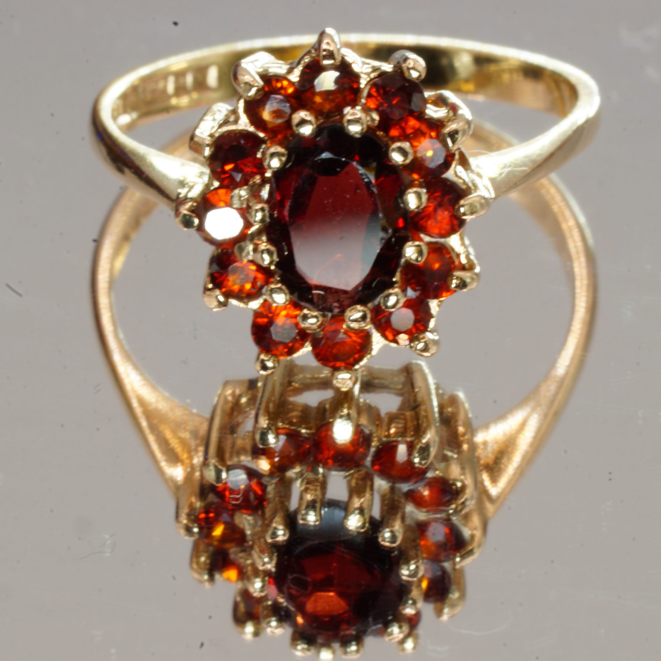 9ct Yellow Gold Garnet Halo Ring UK Size K1/2 Pre Owned