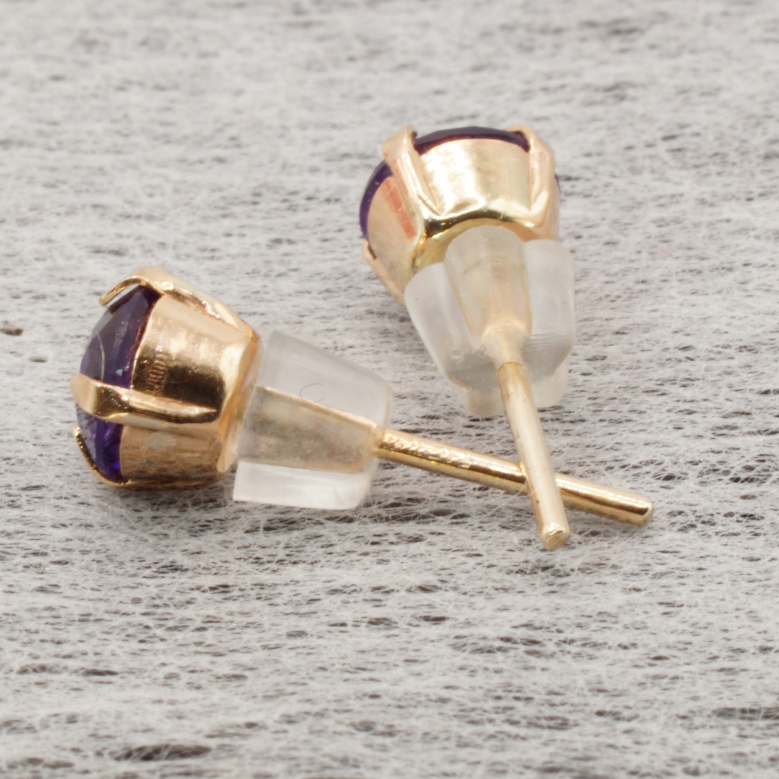 Elevate your jewellery collection with these exquisite pre-owned 9ct yellow hallmark gold stud earrings, featuring stunning amethyst stones that add a touch of elegance and sophistication. Perfectly crafted to catch the light, these earrings are not only a beautiful accessory but also a thoughtful gift for a loved one, beautifully presented in a luxurious velvet box. Ideal for any occasion, they embody timeless style and charm, making them a must-have addition to any jewellery wardrobe. Size 5mm.