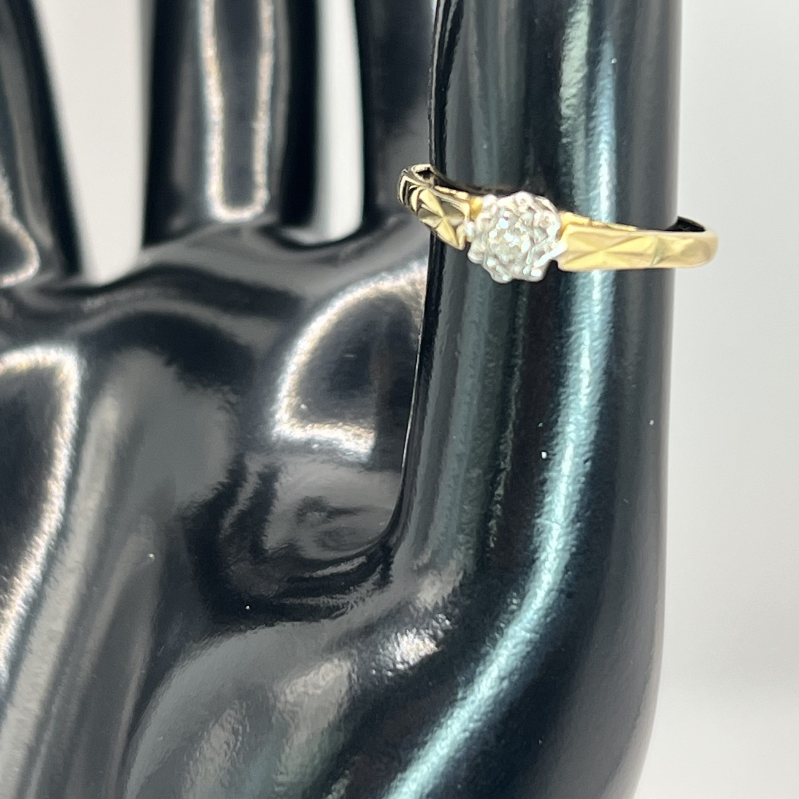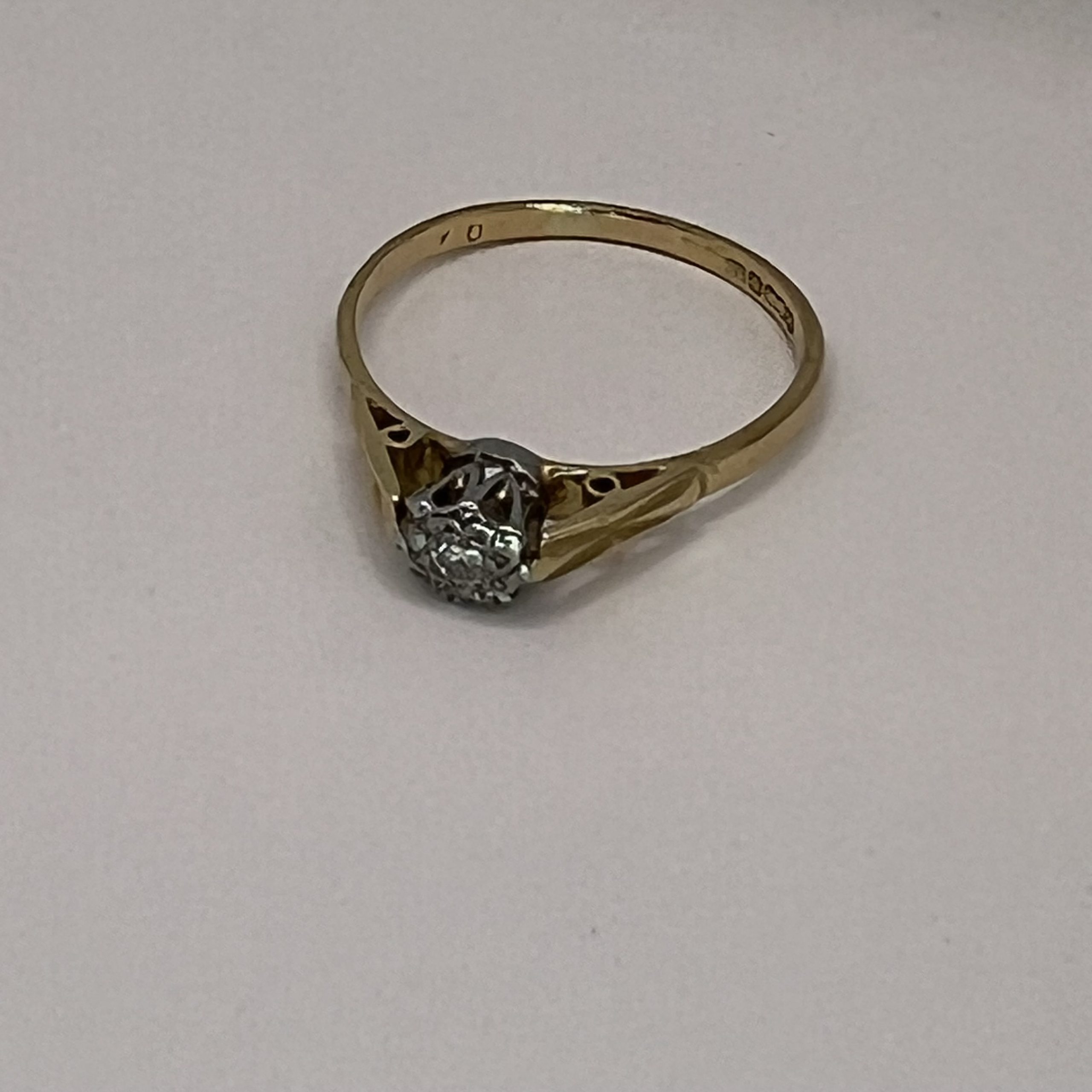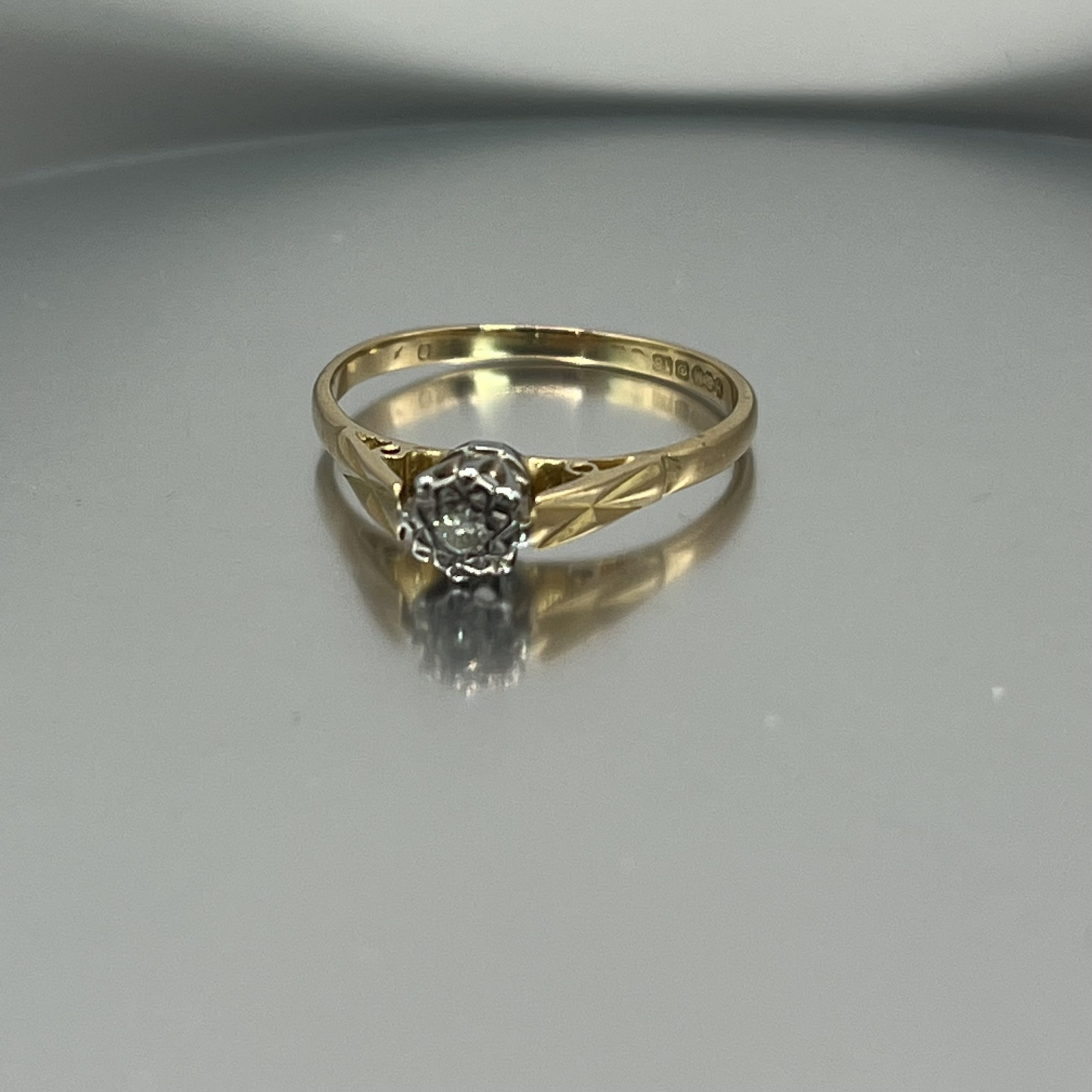 Discover timeless elegance with this exquisite 18ct yellow gold solitaire ring, featuring a stunning diamond centerpiece. This pre-owned piece, complete with a hallmark, is not only a symbol of love but also a versatile addition to your jewellery collection, perfect for engagements or as a stacking ring. Presented in a luxurious black velvet box, it makes an ideal gift for that special someone or a cherished treat for yourself. Embrace sophistication and style with this solid gold treasure, UK Size O.